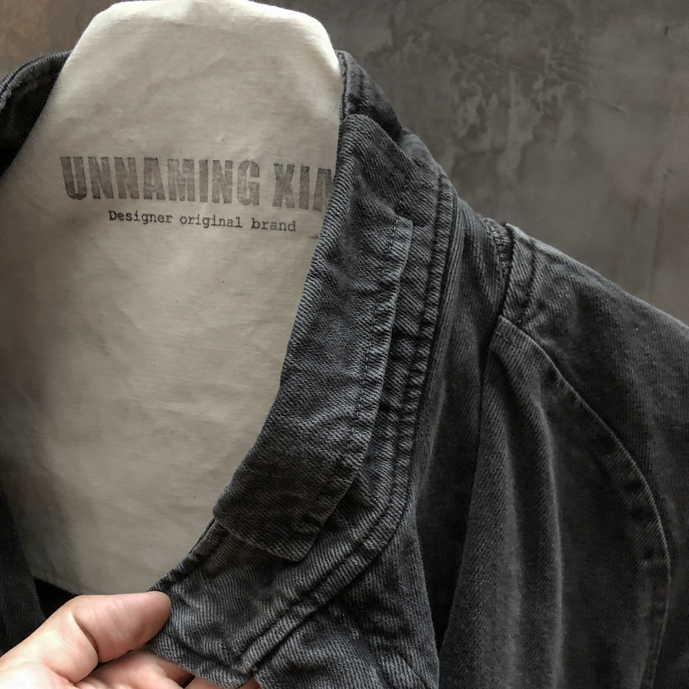 UNNAMING XIA Japanese Dark Dark Gray Wash Cowboy Cowboy Cover Retro is made old lady - collar male casual jacket