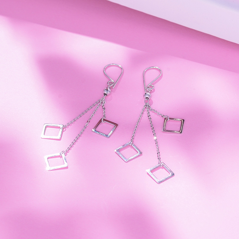 Source Shengfu new PT950 boutique three-wire square platinum ear line white gold ear earrings earrings earrings