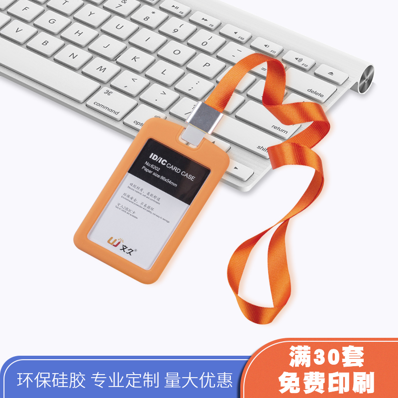 Work card soft silicone card sleeve with lanyard High-grade brand set work card card set ID set Induction card School badge badge badge Student school card School card hanging neck metal buckle work card hanging sleeve customization