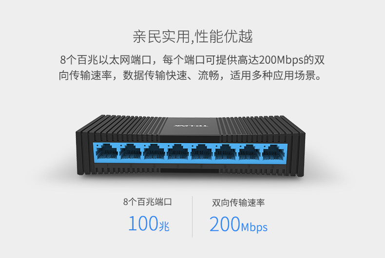 TP-LINK 100 trillion 8-mouth switch 100M Desktop plastic shell switch High speed monitoring hub SF1008