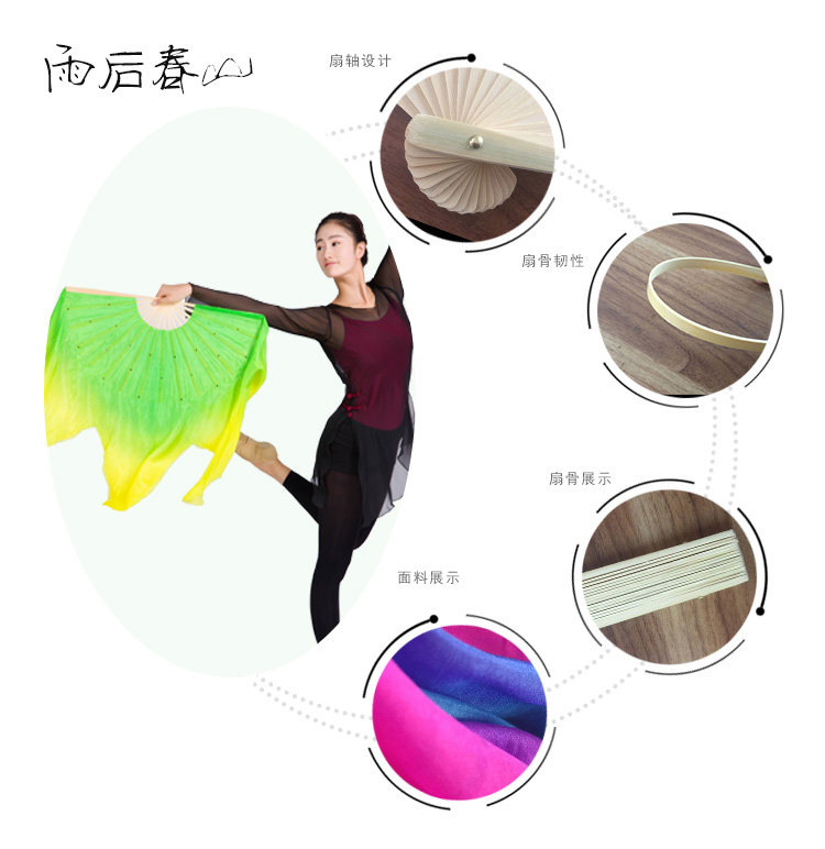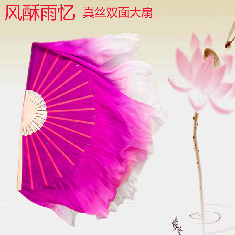 Dance fan dancing fan lengthened double face performance Grand red True silk China Wind classical dance fan round rain spring Mountain
