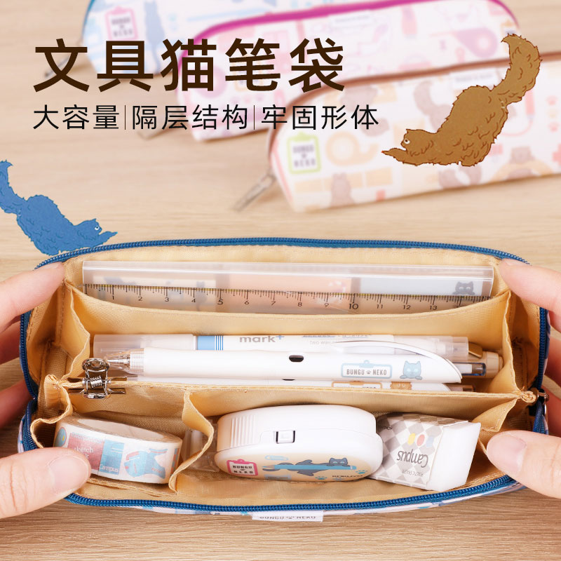 Guoyu pen bag Japan folio canvas multi-functional large-capacity student stationery bag ins Male and female students stationery cat cute small fresh junior high school simple high school student storage bag pillow pillow bag