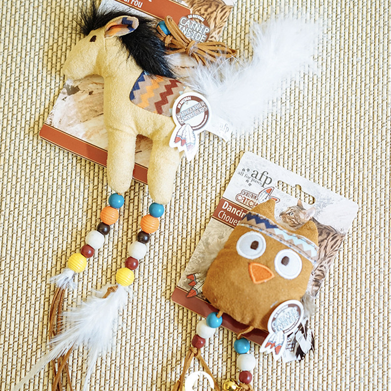 Indian small animals AFP dancing owl running wild horse catnip bell feather toy