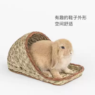 Niteangel Aite rabbit Chinchilla guinea pig small leaf Reed pure hand-made straw slippers sleeping Nest Shelter House