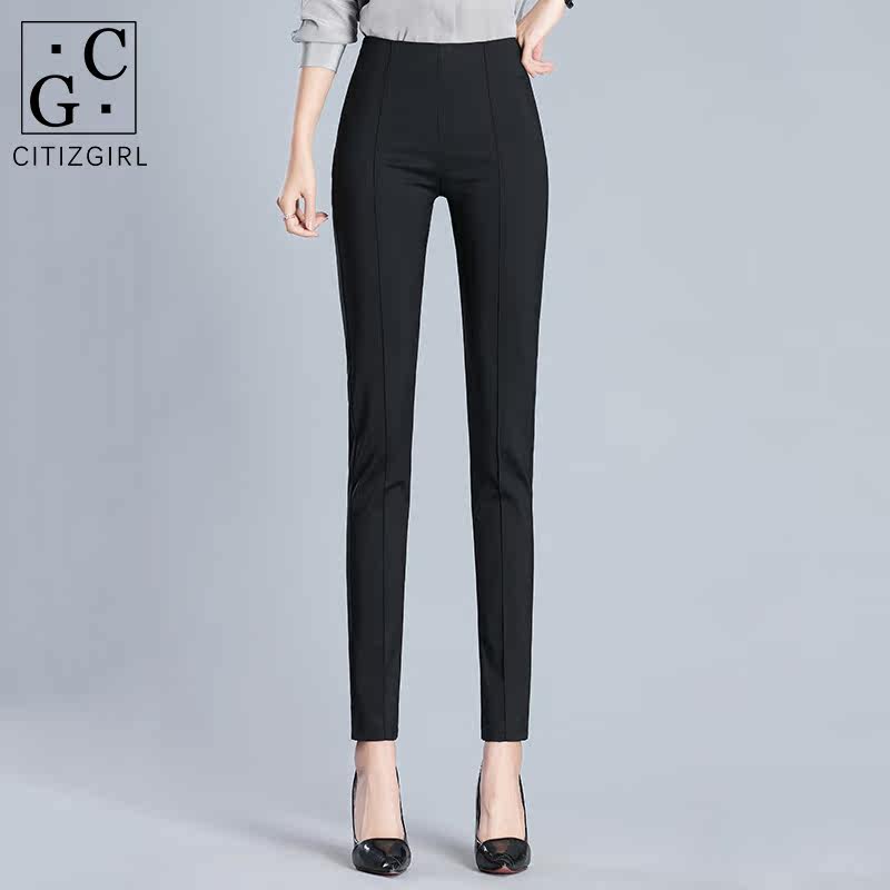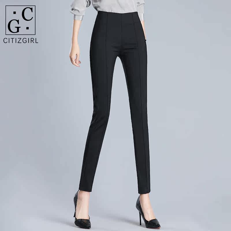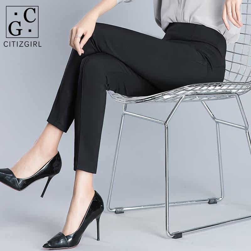 CG black suit pants spring and summer thin 2021 slim slim professional high waist side zipper small feet casual pants