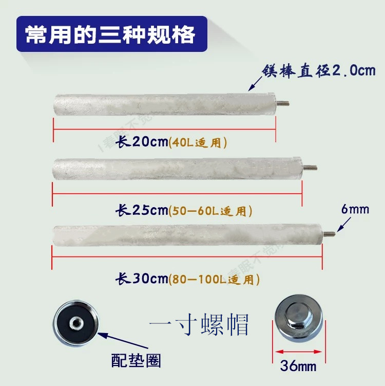 20*200 magnesium rod, one-inch nut (40—45L) 20*250 magnesium rod, one-inch nut (50-75) 20*300 magnesium rod, one-inch nut (80-10