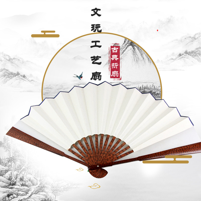 Vin Play Craft Fan Full Flower Serpent Wood Folding Fan Fan Bone Red Mulus Paper Suo Folding Fan 1 Ruler 10 Inch Red Wood