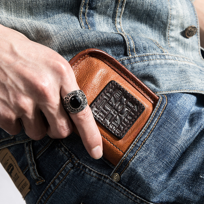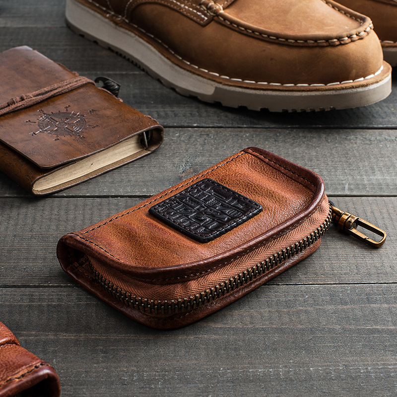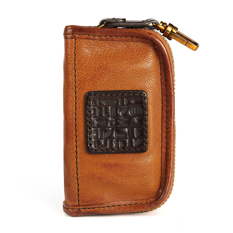 Home door key bag genuine leather men and women retro Ami khaki leather car key universal personality creative