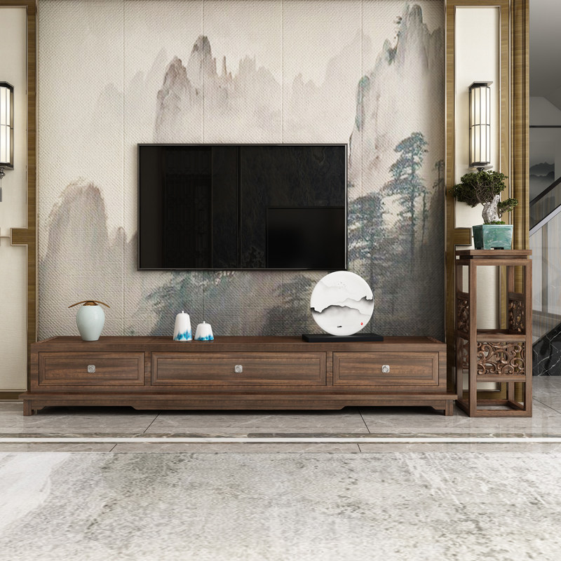 New Chinese solid wood TV cabinet coffee table combination living room wall cabinet set side cabinet modern minimalist furniture cabinet floor cabinet