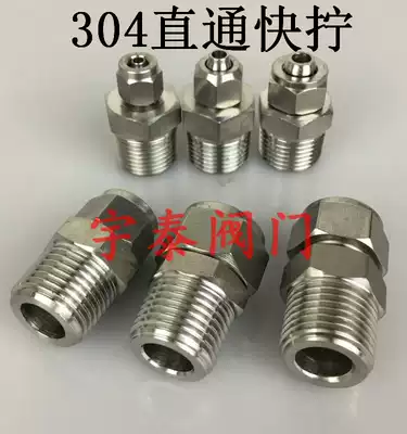 304 stainless steel quick screw through lock female connector PTFE tube Pu tube straight joint nylon pipe joint