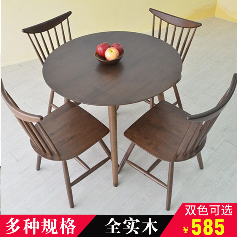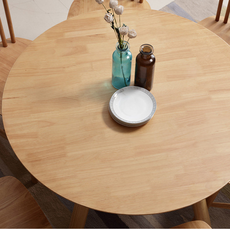 Nordic style solid wood round dining table small apartment simple dining table home 4 people dining table and chair combination 1 meter round negotiation table