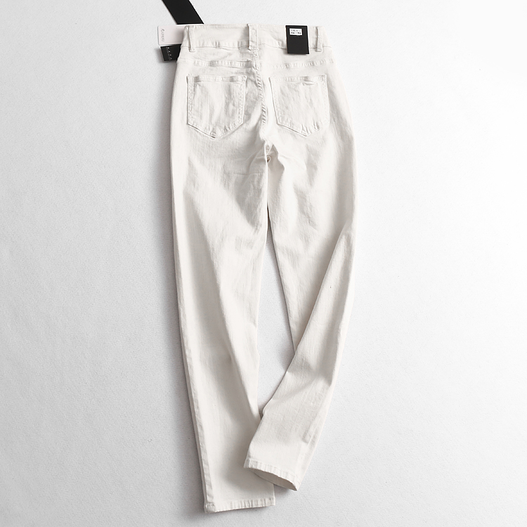 R482 Temperament Women's Dress New Minimalist Pure Color High Waist Display Slim Fit Elastic Narrow Leggings Lady Jeans Long