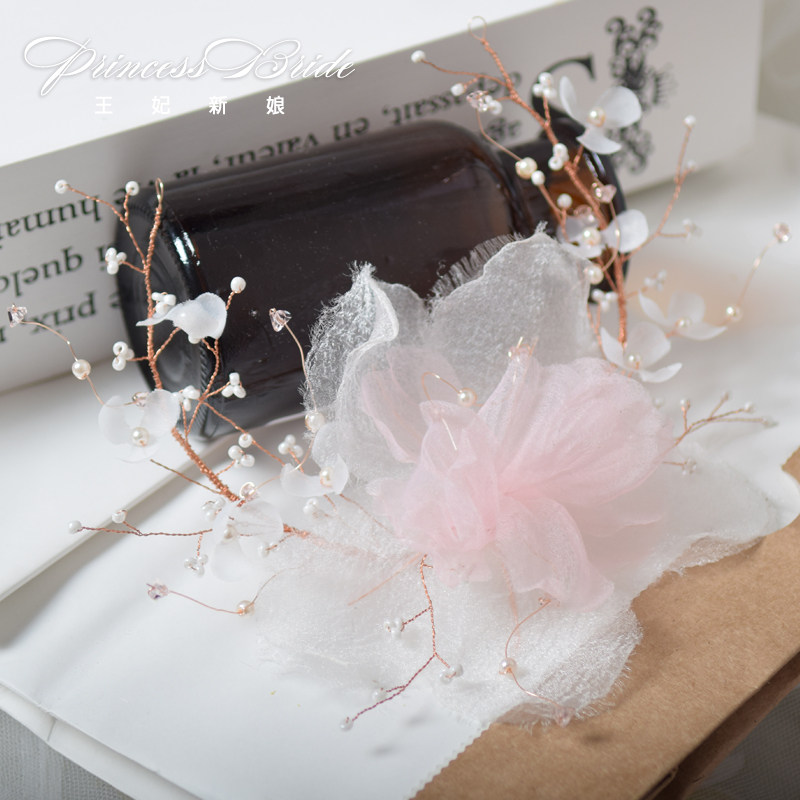 2020 Mori Department Superfairy Pale Pink Silk Flower Pan Hair hoop Bride Wedding Wedding wedding dress Accessories Photo Gallery Styling Headwear