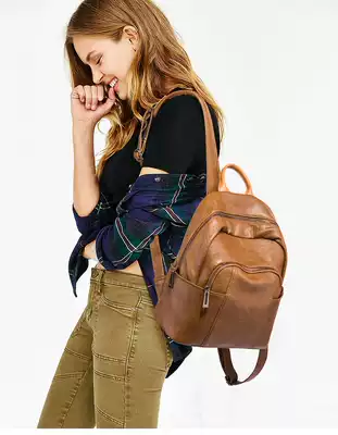 Hong Kong leather backpack female 2021 new Korean trendy all-match soft leather backpack school bag leisure travel