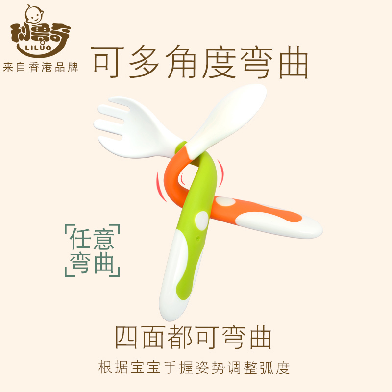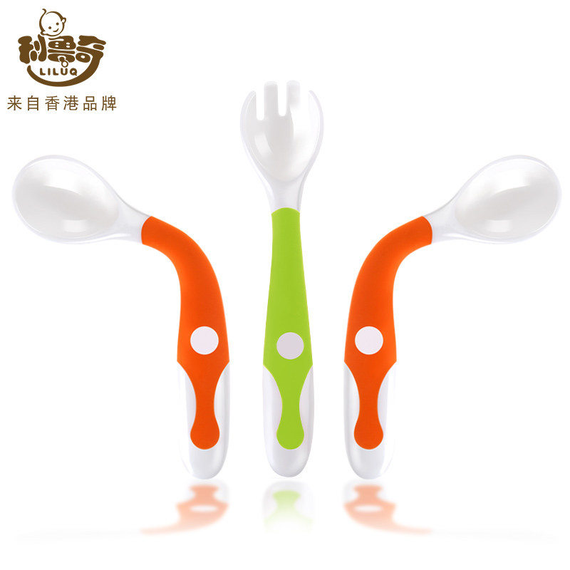 Liluqi curved spoon baby spoon learning to eat training elbow spoon crooked head rice spoon infants and young children practice