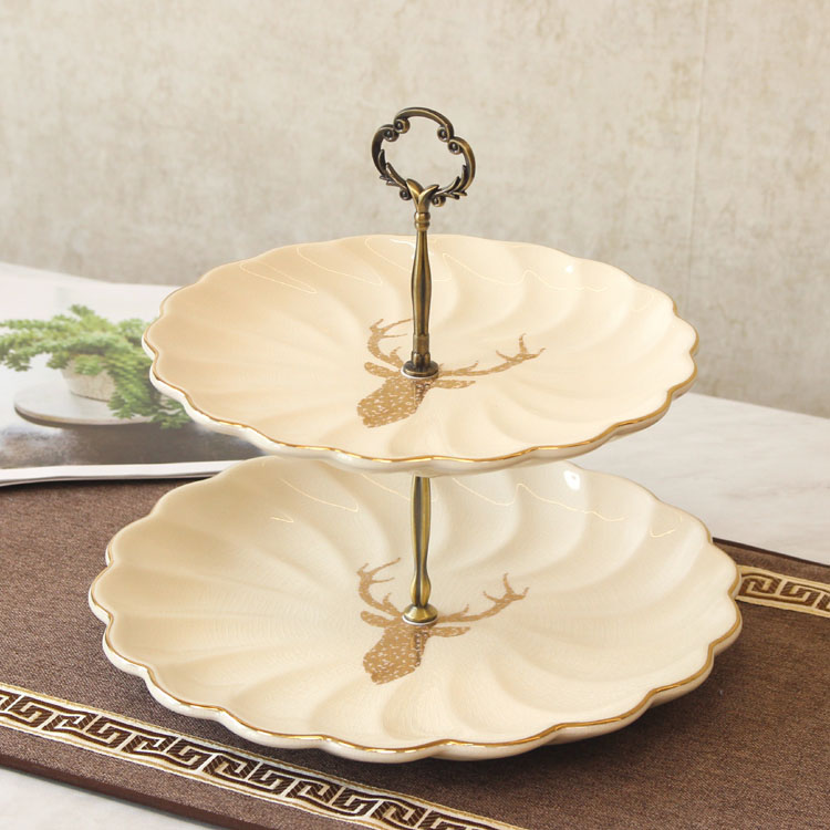 Modern light lavish minimalist ceramic double-layered fruit pan Nordic American baked bacon cake pan Creative snacks candy tray