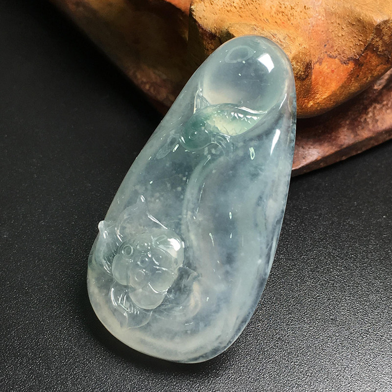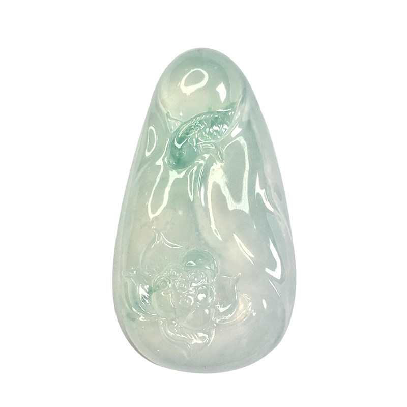 Stone Weng natural Myanmar A cargo emerald high ice gel floating green flower lotus leaf fish water Rundown pendant