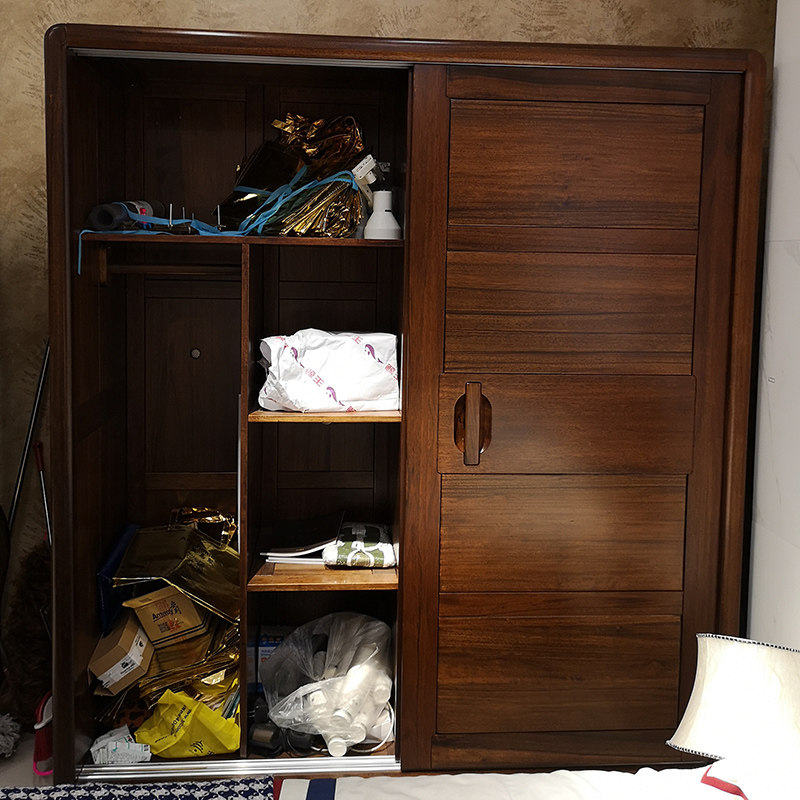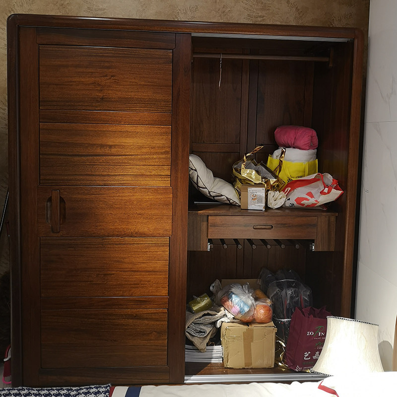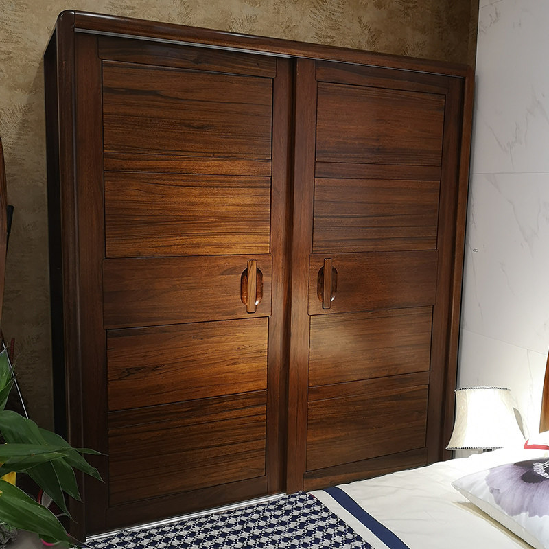 Full solid wood wardrobe push-pull sliding door storage cabinet 1 96 meters assembled modern Chinese black walnut wardrobe
