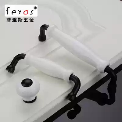 Modern minimalist wardrobe handle Hardware accessories Overall cabinet door handle Black ceramic round drawer single hole crystal