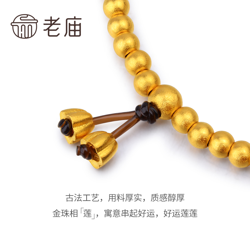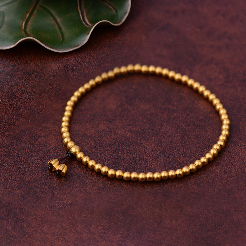 Old temple gold Fuhui foot Gold ancient rhyme gold bracelet ancient charm gold bracelet ancient hand string bracelets gold beads gift gifts