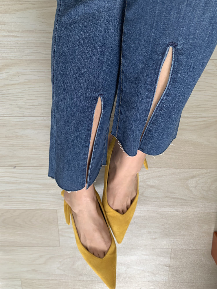 2022 Stretch Slim C Home High Waist Front Slit Raw Edge Nine Points Micro Horn Shows Tall and Thin Straight Women's Jeans