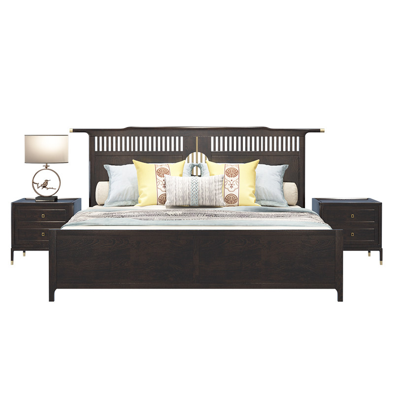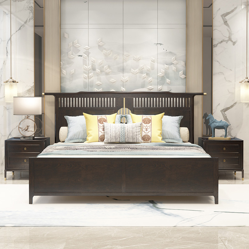 New Chinese solid wood bed bedroom double bed modern Chinese luxury master bedroom high-grade 18 meters classical Zen furniture