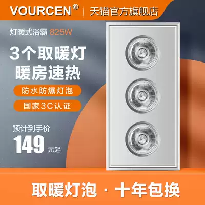 Lamp warm yuba Integrated ceiling Yuba heating bulb aluminum gusset three lights 825w powder room bathroom waterproof and explosion-proof