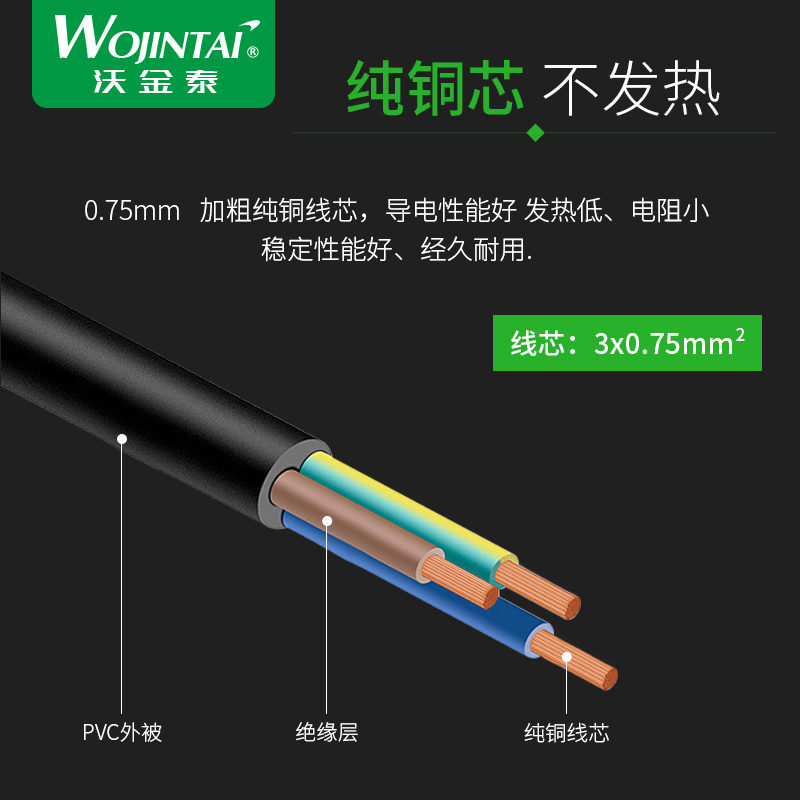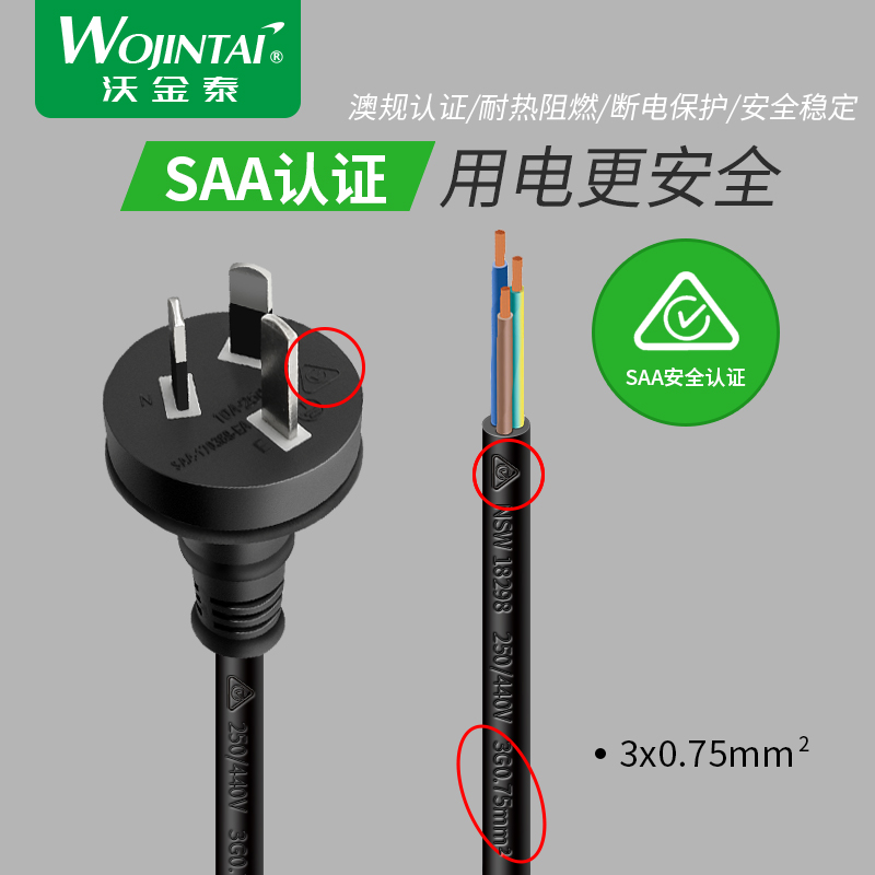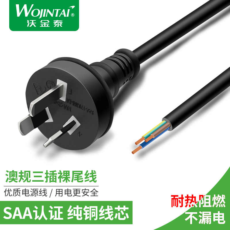 SAA certified pure copper Australian tender Australian gauge straight head bare tail power supply single head line 0 75 square 1 5 m three holes universal