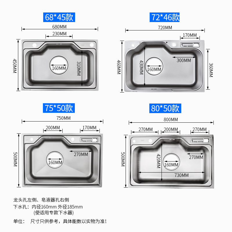 72X46 with A faucet 80X50 with C faucet 75*50 Without faucet Basic 80X50 with A faucet 72X46 with D faucet 61*45 with D dragon