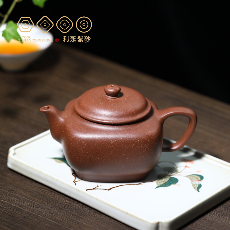 Century-old Liyong Yixing famous purple sand pot pure handmade square teapot tea set purple mud sand mixed square pot