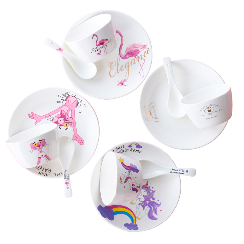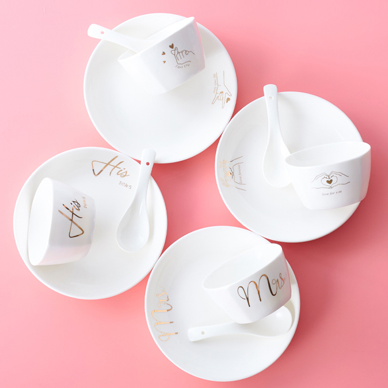 Nordic creative two-person food lovers ceramic tableware gift box Birthday gift Girl heart plate bowl spoon set Home