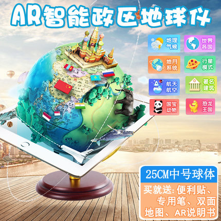 Pigeon globe 25cm junior high school student teaching class student world globe living room home decoration children's large and small table lamp Chinese and English HD AR smart three-dimensional gift school supplies