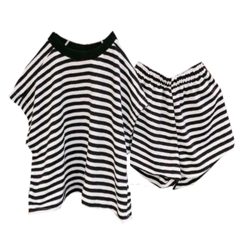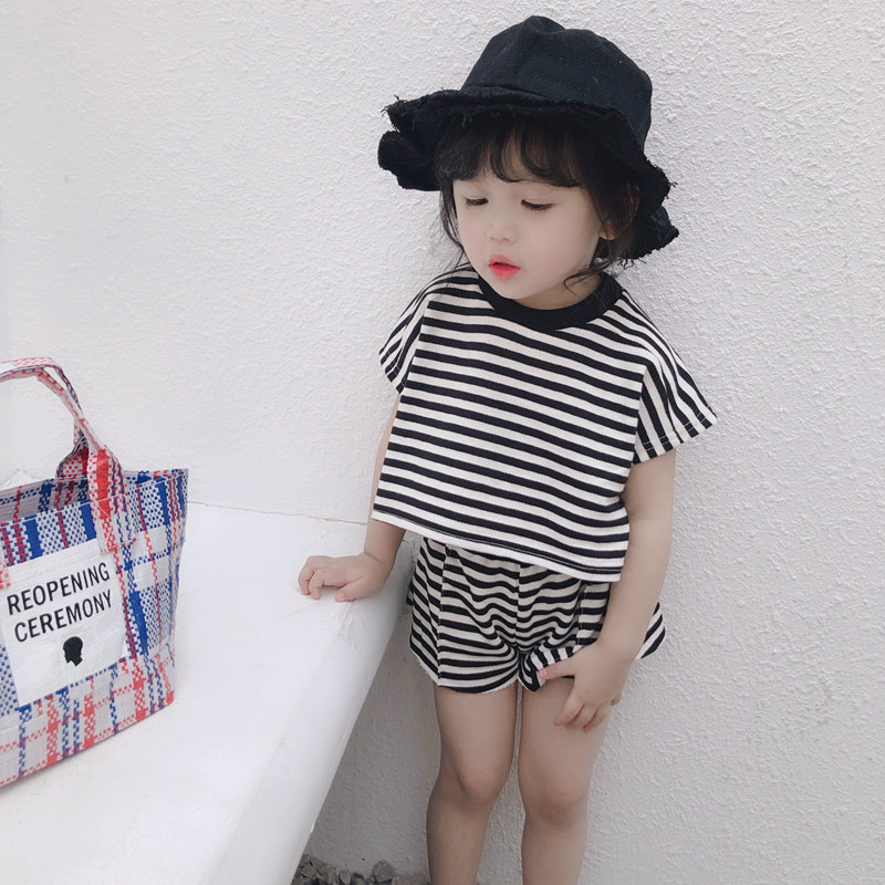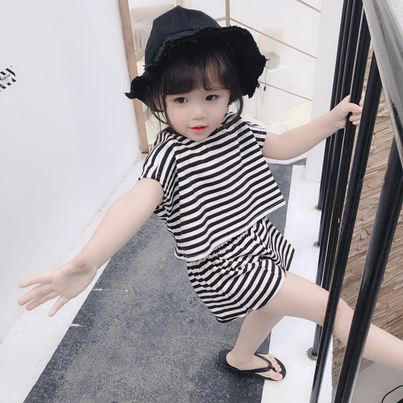 Children's clothing girls' suits children's summer clothing 2021 new Korean version of children's children's striped short-sleeved pants two-piece tide