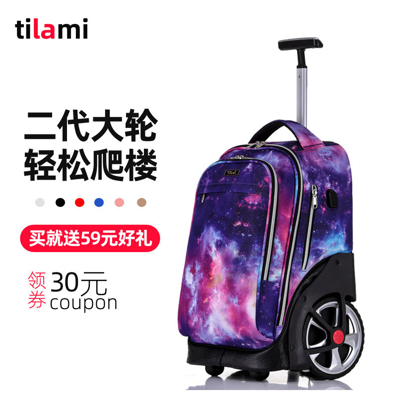 tilami elementary school student trolley school bag Junior high school students large capacity waterproof can climb the building boys and girls back pull dual-use