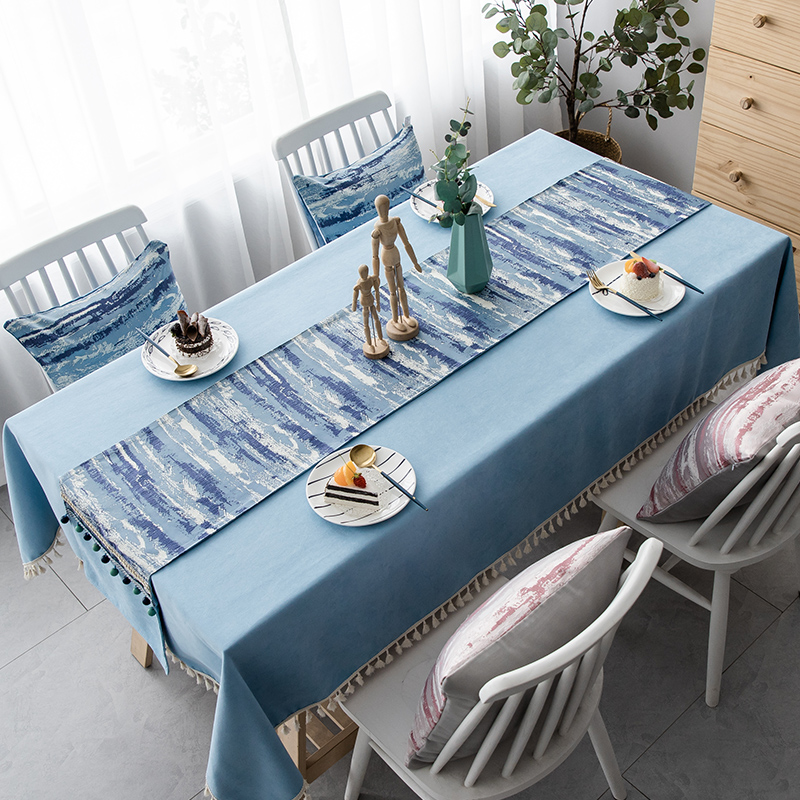 Modern simple blue rectangular tablecloth table cloth Nordic conference exhibition office long tablecloth customization