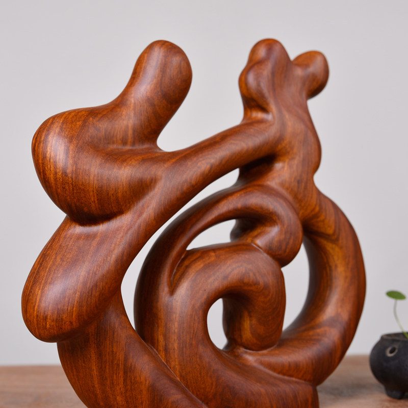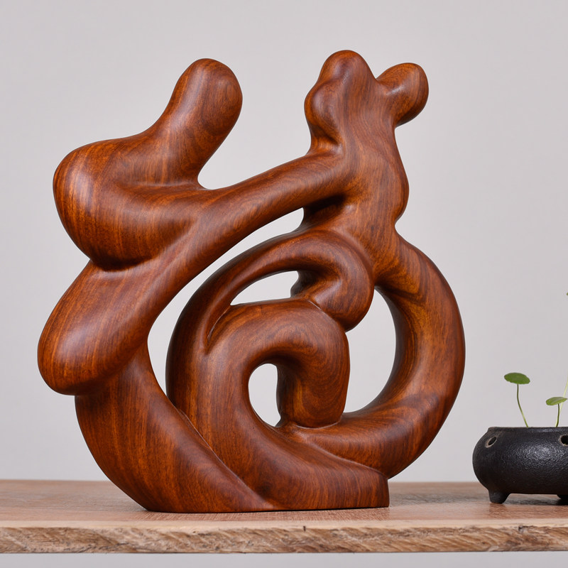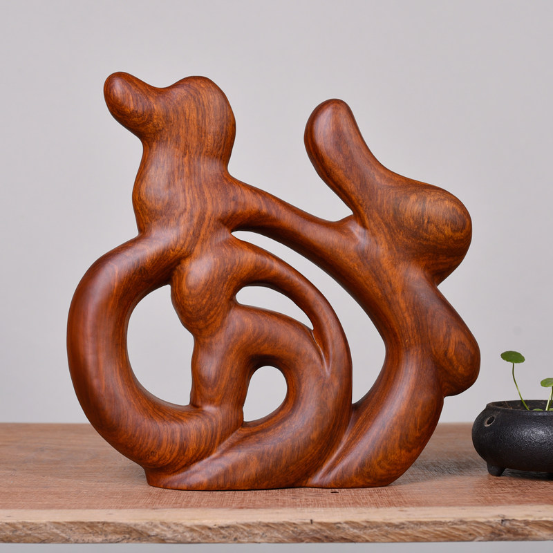 Wood carved pear solid wood home decoration root carving ornament living room simple decoration Fu zi mahogany art word gift