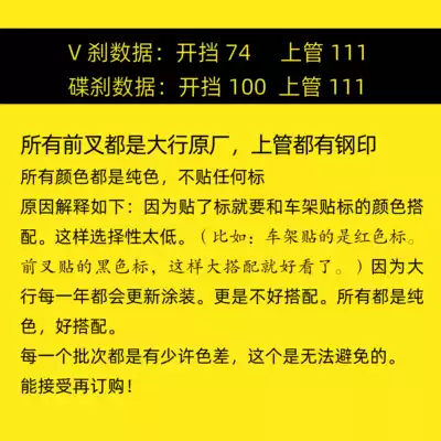 Bright black steel V brake front fork large screw bright black disc brake white steel V brake white aluminum v brake bright black aluminum C brake white disc brake orange disc brake black aluminum C brake Post green aluminum C brake green aluminum C Brake