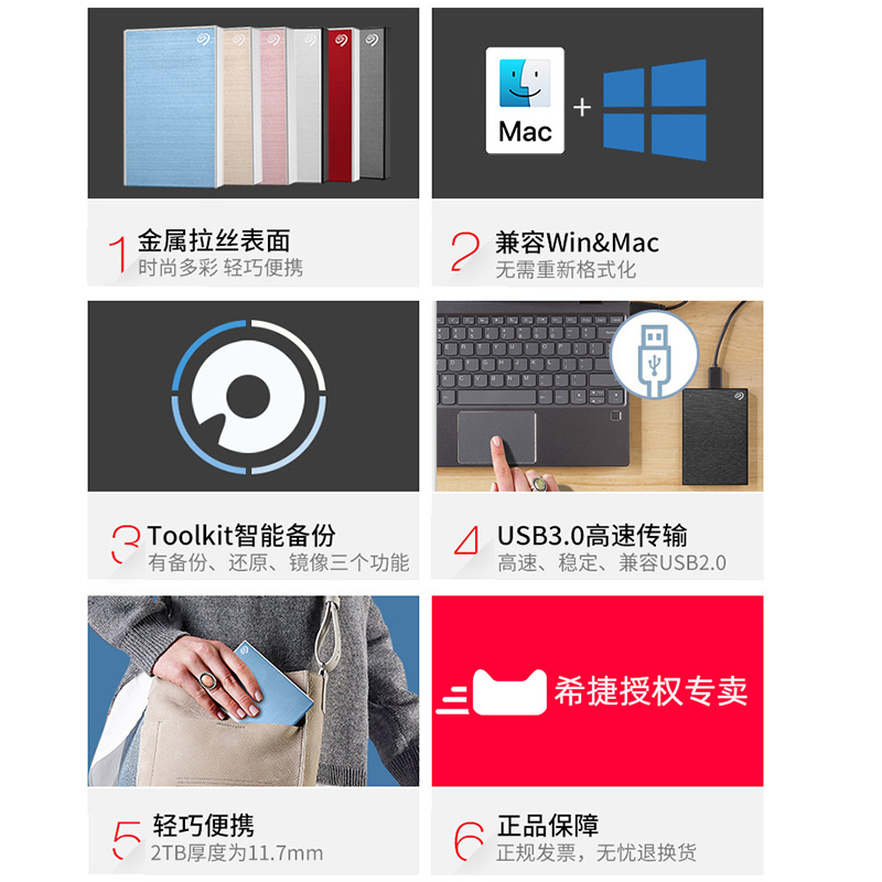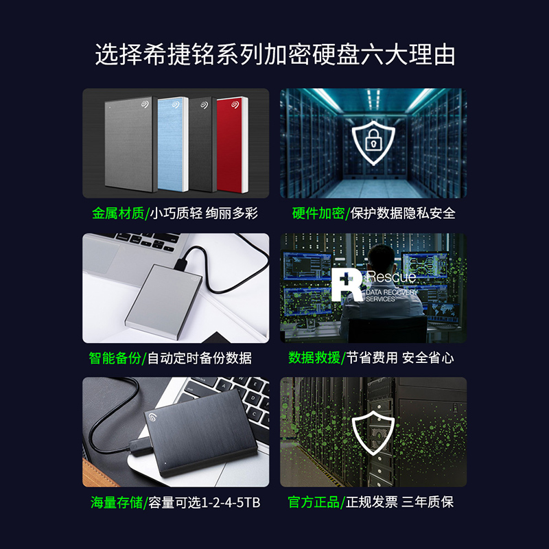 Seagate portable hard disk Ming 2t Ming series 2 5-inch 2tb high-speed USB3 0 portable hard disk encryption