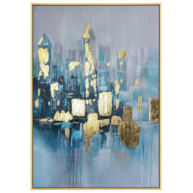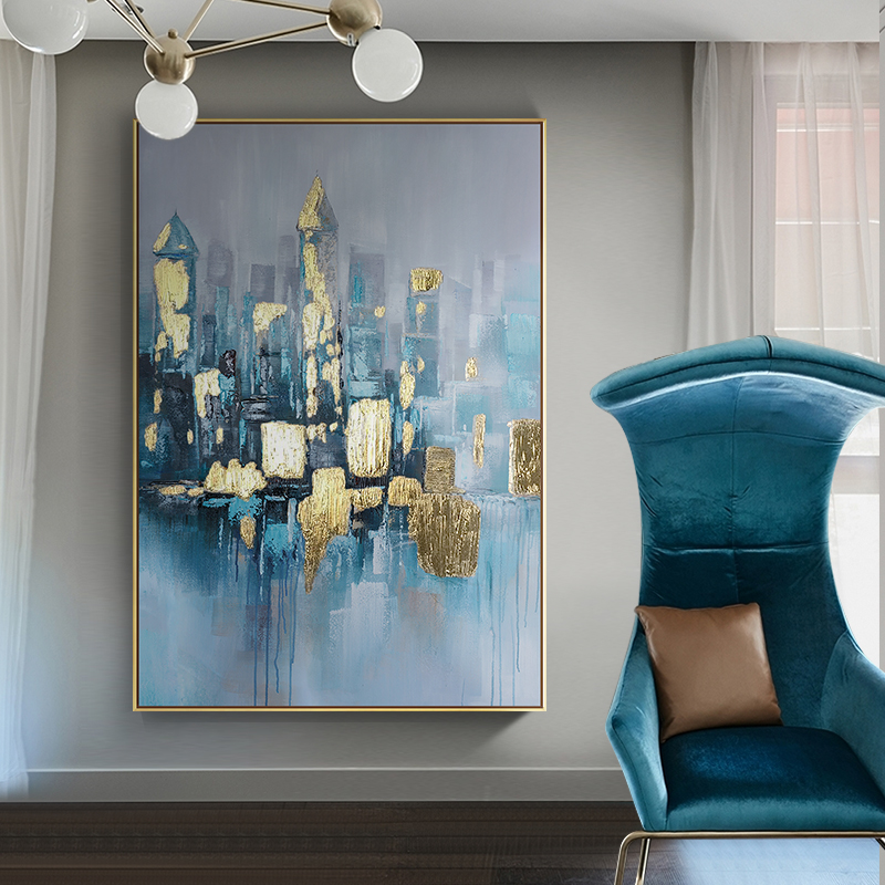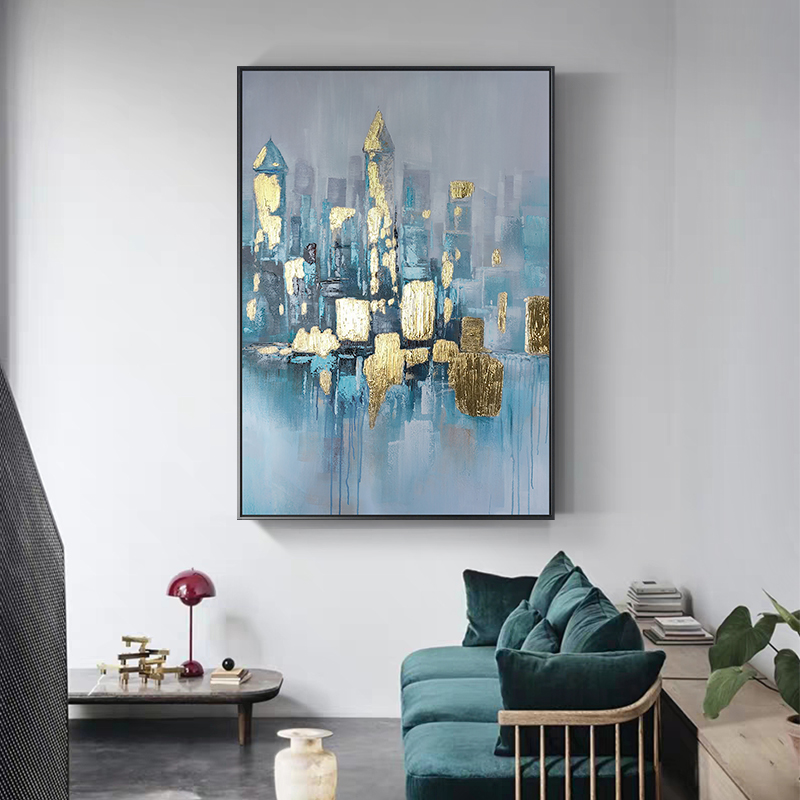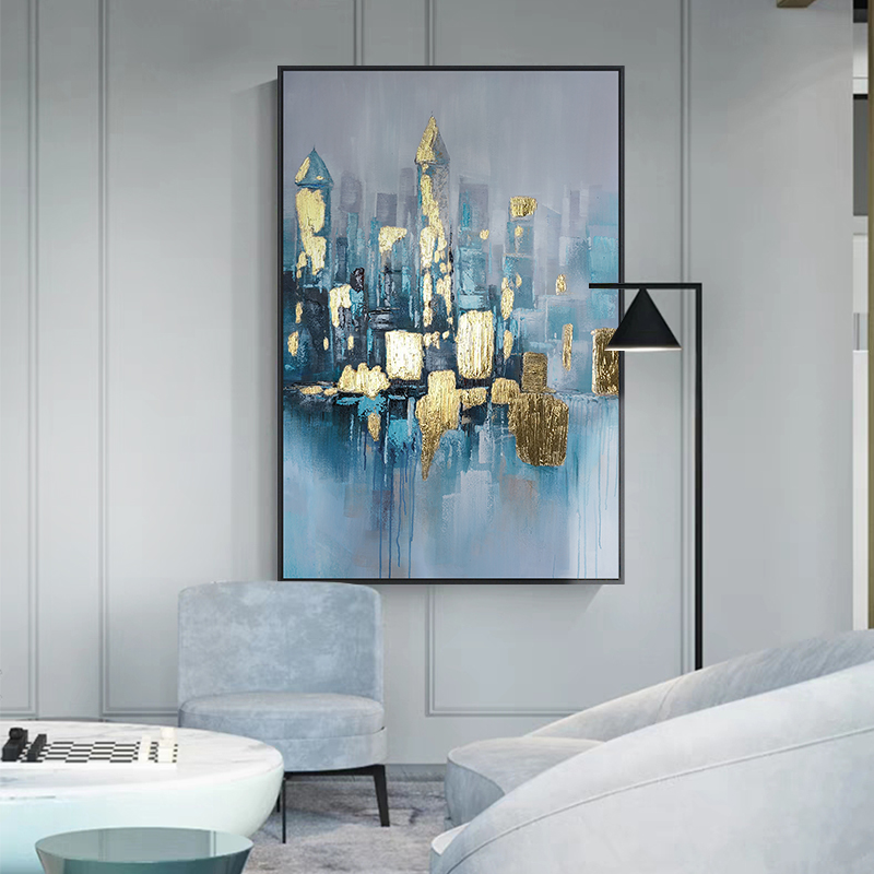 Abstract City Gold Leaf Painting Introductory Xuan Guan Decoration Painting Modern Light Extravagant Vertical Version Wall Hanging Painting Corridor Aisle Wall Painting