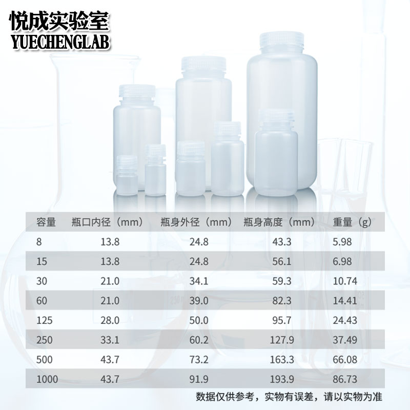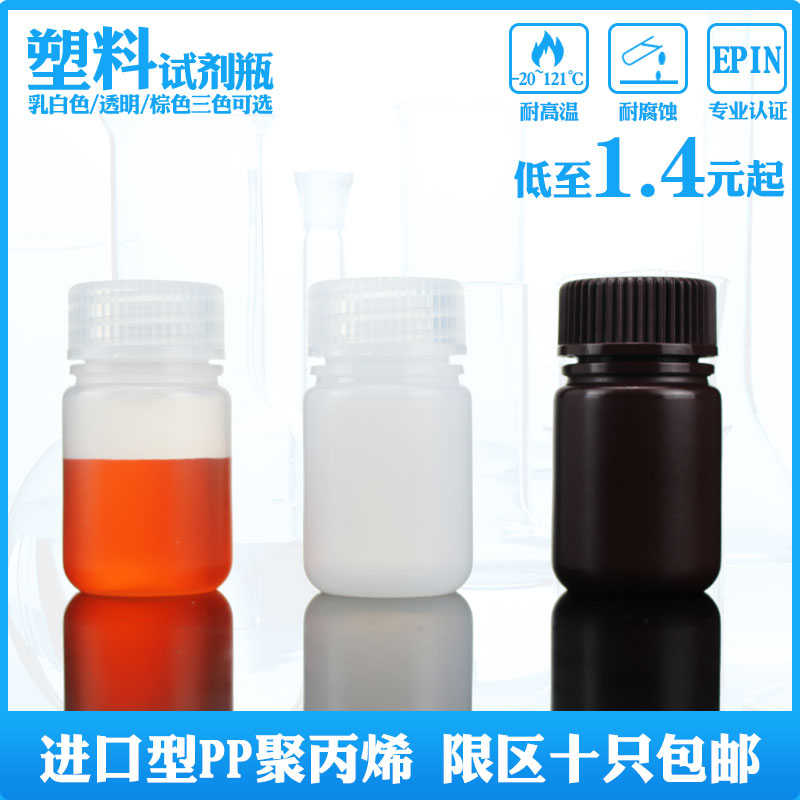 Temperature-resistant acid-based chemical plastic reagent bottle 8 15 30 60125250500 1000ml transparent brown plastic bottle wide mouth polypropylene milk white high temperature resistant P