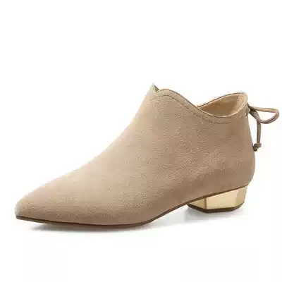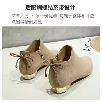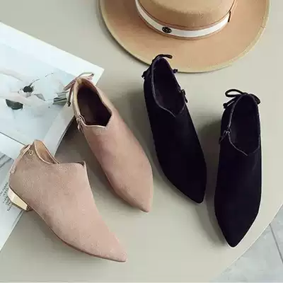 2020 new boots female Korean version of Martin boots large size single boots thick heel short boots pointed suede flat spring and autumn naked boots
