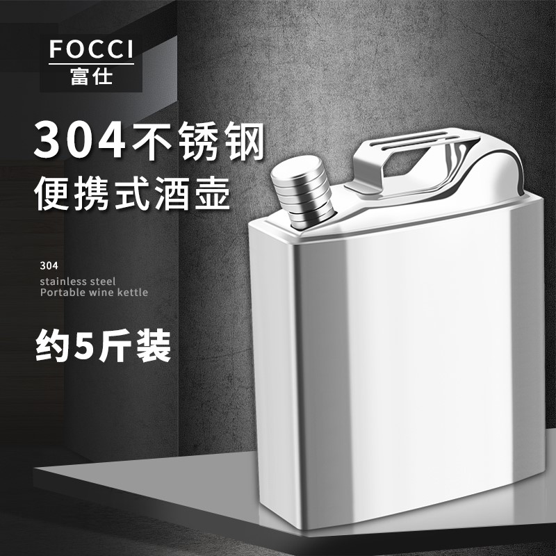 High-grade German imported 304 stainless steel outdoor portable wine bottle large-capacity 3 catties 5 catties wine set oil barrel