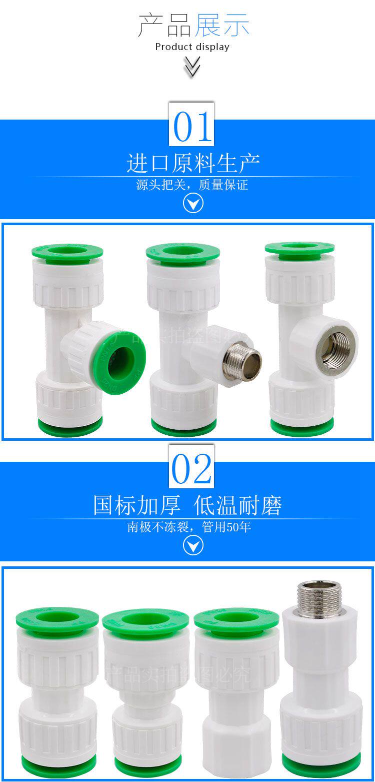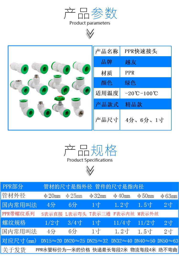 32mm (1 inch) PPR quick connection direct green 32mm (1 inch) PPR quick connection elbow green 32mm (1 inch) PPR quick connection tee green PPR quick connection different diameter direct S32