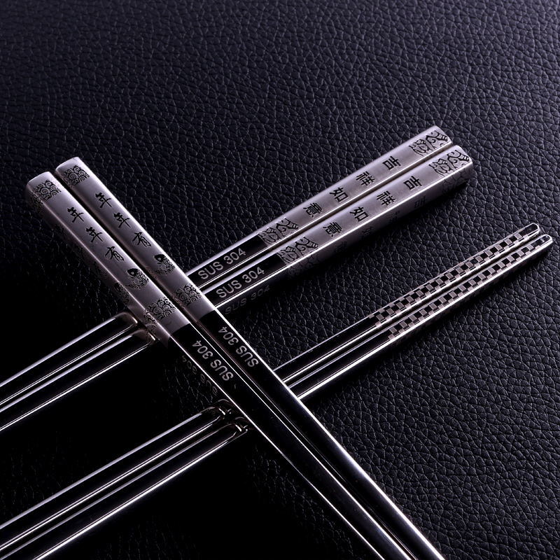 304 stainless steel chopsticks set household high-end non-slip mildew adult family wear metal personality fast 5 pairs