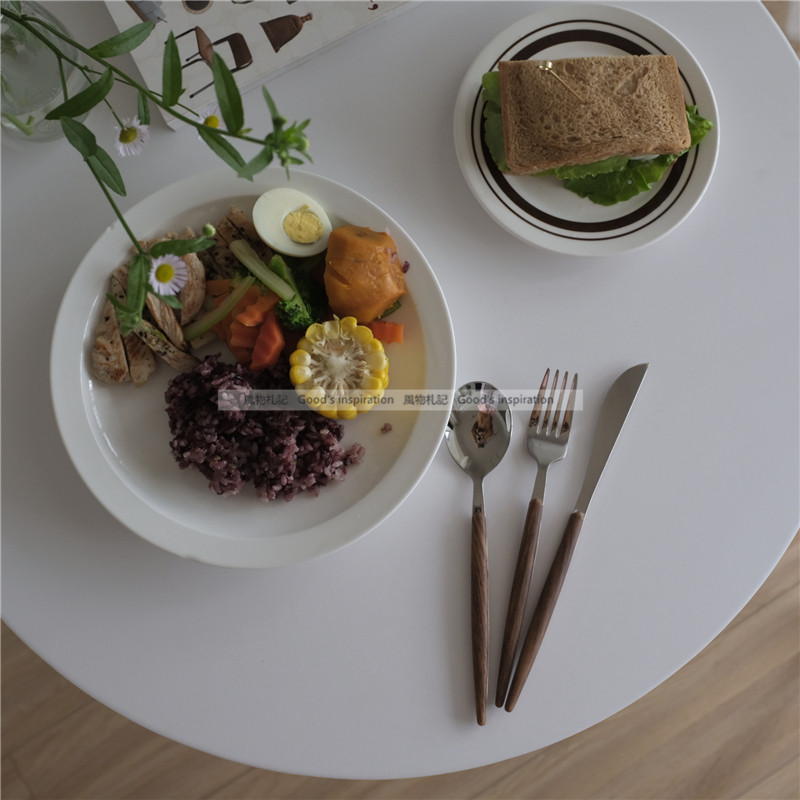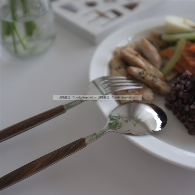 Imitation of walnut wood grain at the tip—Imitation of walnut wood grain at the tip of table knife—Imitation of walnut wood grain at the tip of table fork—Imitation of walnut wood grain at the tip of table spoon—three-piece knife, fork and spoon set