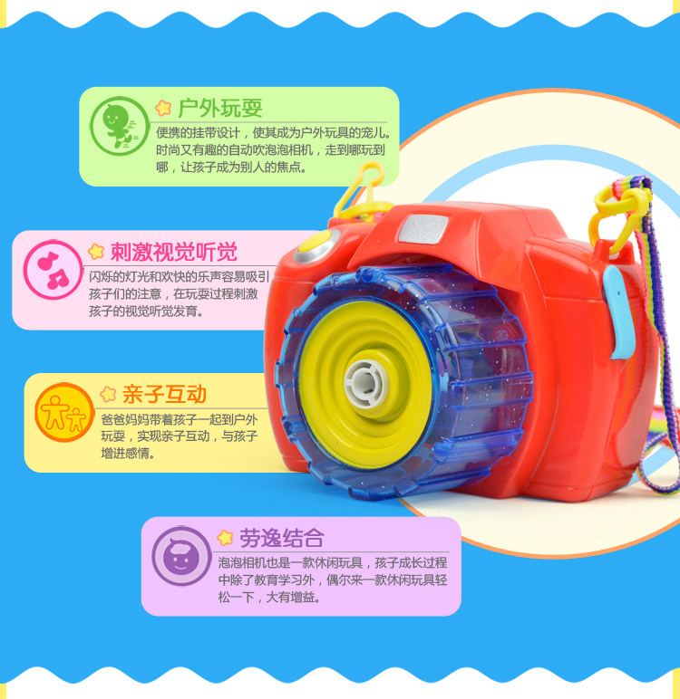 Bubble camera (red)1 bottle of bubble water Battery bubble camera (yellow)1 bottle of bubble water Battery bubble machine white red wave point 2 bottle of bubble water Battery bubble machine white blue wave point 2 bottle of bubble water