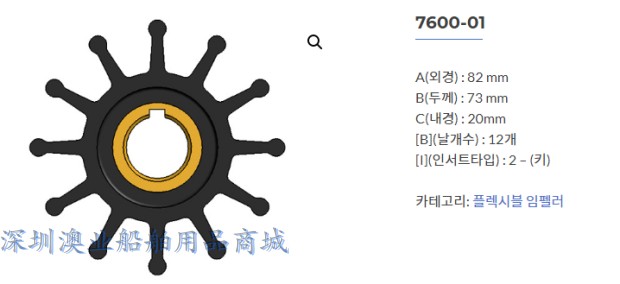 South Korean JMP seawater pump impeller 7600K-01 substitutes JABSCO:18958-0001 SHERWOOD: 17000
