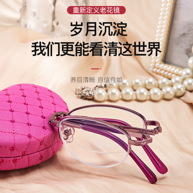 Presbyopic glasses folding portable high-definition elderly anti-radiation glasses ultra-light anti-blue light presbyopic glasses female