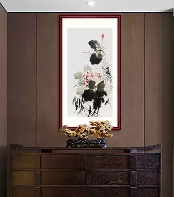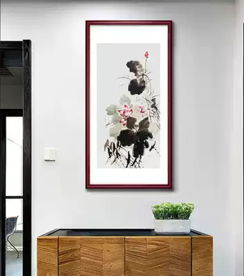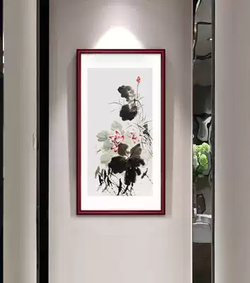 Pure hand-painted Chinese painting four-foot vertical lotus freehand ink painting Zhongtang calligraphy and painting flowers and birds paintings Support customization