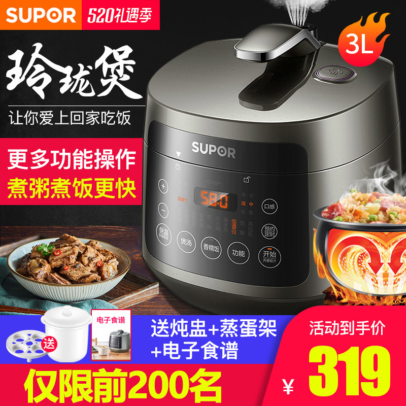 Supor 3L electronic pressure cooker household intelligent official 1 pressure cooker Mini small electronic pot pot special price for 2-4 people